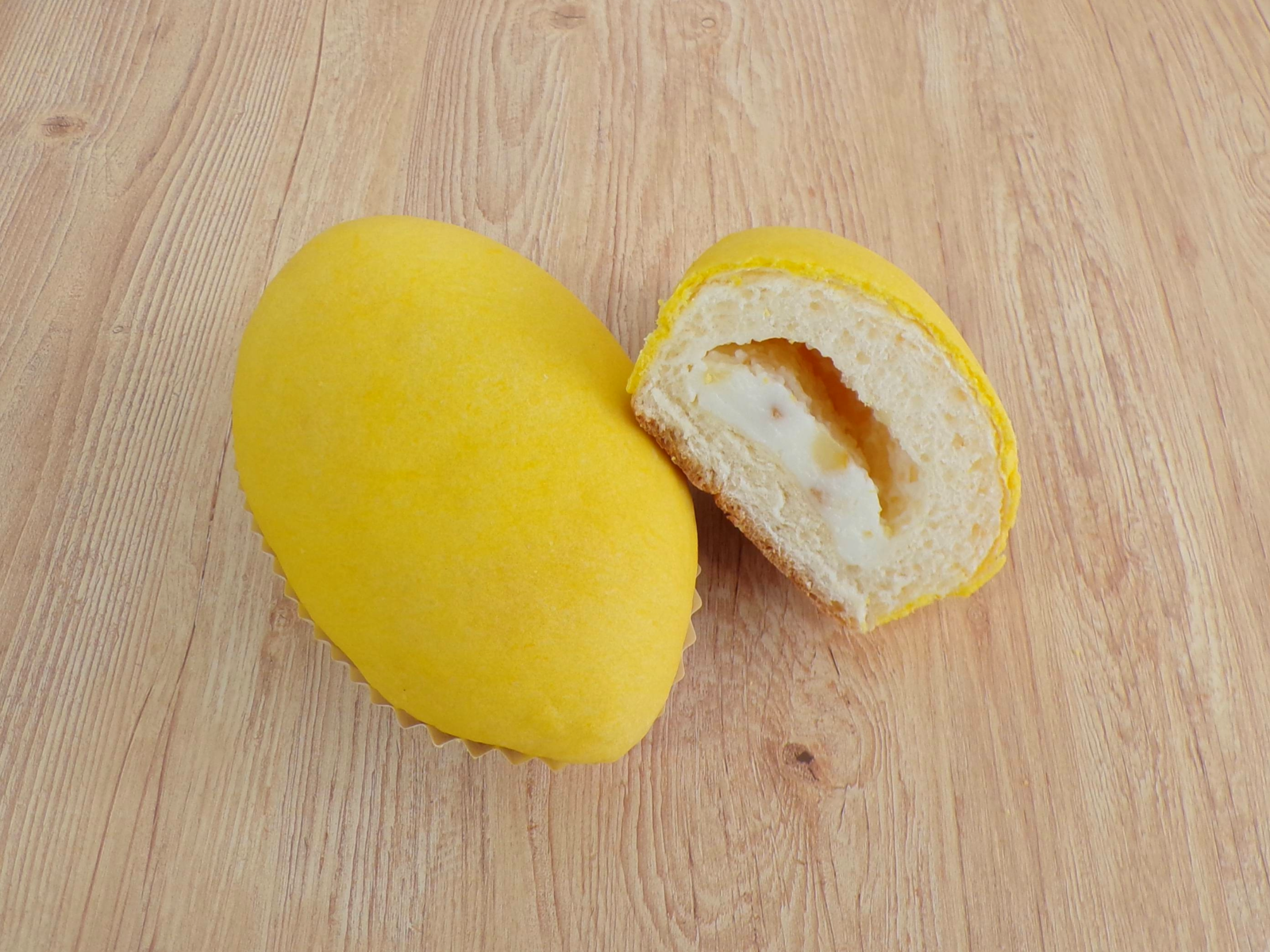 - 口溶けの良い菓子パン生地に、レモンピールを入れたミルク風味のクリームを包み、黄色い皮生地をかぶせ焼き上げました。ミルクのコクとレモンの爽やかな味わいが美味しい、見た目もレモンイメージのパンです。