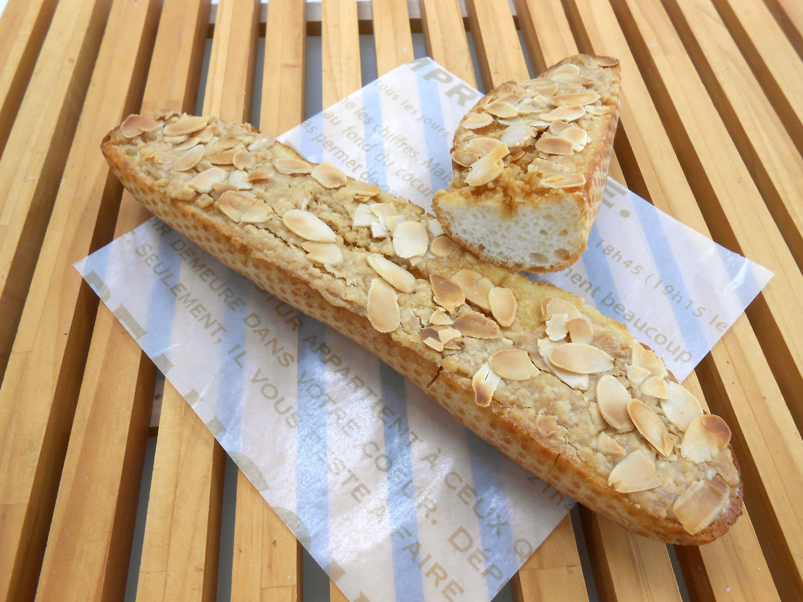 - 焼き上げたプチバタールをカットし、香ばしい味わいのヘーゼルナッツ風味のバタークリームを塗って焼き上げました。クリームの油分がパンにしみ込んだ所も美味しさのポイントです。