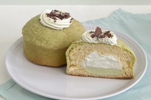 クラウンメロン風味のクリームを包んだブリオッシュのクラウンメロンパンに、爽やかな味わいのクレームシャンティーを合わせました。