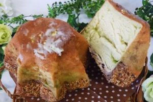 パンを富士山に見立ててつくりました。口溶けのよさにこだわり、下からチョコ層、中段がメロンクリーム層、上段がメロンフロマージュ層と登りながら食べていくイメージです。また、配合にクラウンメロンワインを使用し、味に深みを出しています。テーマとして日持ちのよい商品に仕上げていますので、実際にお土産に持って帰れるパンとして、多くの方にクラウンメロンの味を知ってほしいと願いを込めています。