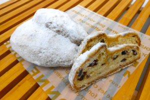 シュトーレンに溶かしたカルダモン風味のバタークリームでたっぷりコーティングしました。表面の甘いシュガーと芳醇なドライフルーツの香りのイースト菓子をスパイシーなカルダモンが引き締めます。