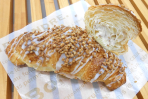 クロワッサン生地に、焙煎した国産玄米を入れた、ミルク風味のクリームをサンドし、外側にも焙煎した玄米をトッピングしました。カリカリ食感が美味しいクロワッサンサンドです。