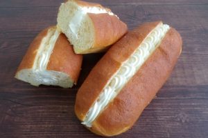 背割りにし、※②スイートチーズホイップをサンドします。 |