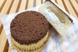 口溶けの良い生地に、カフェオレ風味のクリームとスイートチーズホイップを入れました。ココアとパリパリ食感のコーヒークランブルが合わさり、ティラミス味に仕上げました。表面のパリパリ食感も美味しさのポイントです。