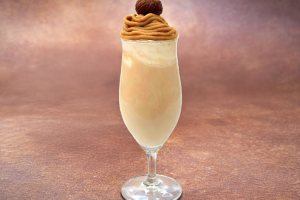 和栗風味のクリームと牛乳をミキサーし、ホイップクリーム、和栗風味のクリーム、渋皮栗をトッピングしたモンブランのような味わいのドリンクです。