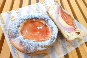 デニッシュ生地に、栃木県産とちあいかを使用したクリームと、チーズケーキ生地を合わせて、爽やかな苺の味がアクセントの窯出しチーズケーキのようなパンを作りました。